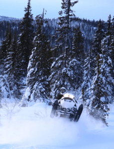 Innan vårt besök hade det kommit ordentligt med snö den senaste tiden, och förhållandena för lössnökörning var som bäst. Körningen här är väldigt varierande och man kan snabbt välja mellan lite öppnare terräng på högfjället. Eller om man hellre gillar teknisk körning nere i den mer utmanande granskogen.