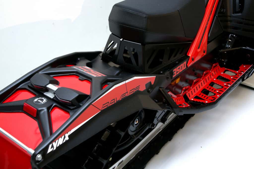 Vid första anblicken ser man direkt att det är något som har hänt längst bak på maskinen. Vanligtvis används en aluminium tunnel till hela chassit men på nya RS 600an går Lynx mot strömmen genom att presentera en ny lösning där bakdelen är gjord av polyeten. Den nya tunneldesignen ska enligt Lynx klara tuffare behandling ute på banan där påkörningar händer ibland.