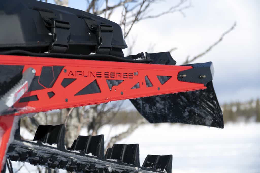 Airline series som tillverkas i Sverige är en tredelad bakbåge i laserskuren aluminium med den rätta looken och kraftig konstruktion och genomtänkt design. Vad vi menar med detta är att bågen har precis som tunneln på Polaris en bockad nederkant som lätt blir repig och böjd, ni Polarisägare där ute känner säkert till problemet.