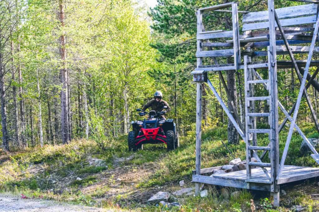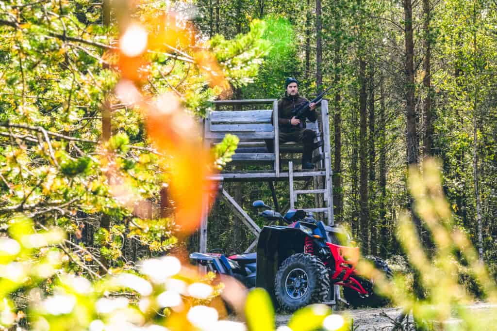 Vi anländer vårt pass med vår 4-hjuliga vän Scrambler-1000 från Polaris. Smygandes upp i tornet börjar pulsen stiga och adrenalinet pumpa, nu är det jakt på riktigt och drömmen om storoxen kan när som helst slå in. Här gäller det att sitta still och vara tyst, påpälsad med 15 lager kläder som en köttbulle är rörligheten kanske inte den bästa, men är det något jag hatar så är det att frysa. Dem första kyliga morgontimmarna svischar förbi utan nån vidare action. Men så…