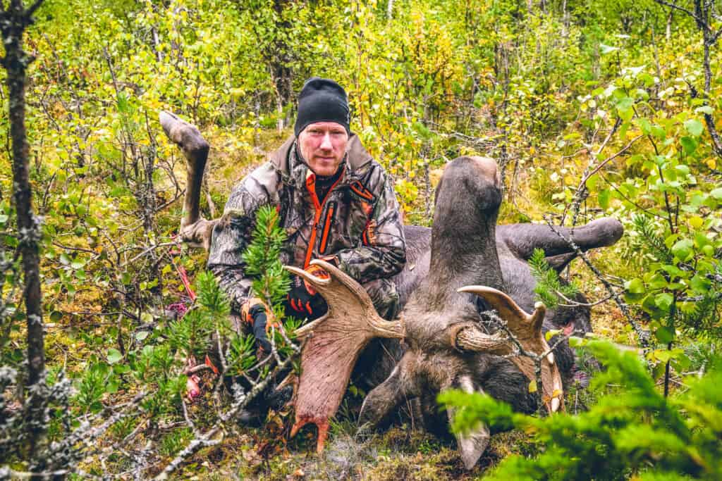 Ett par skall ekar ut genom dalgången och det känns inte alltför långt bort. Jag kvicknar till och greppar handen om bössan. Nu stiger pulsen igen, tänk om…. Drömmen om storoxen svischar förbi. Skallen fortsätter och efter några minuter hörs tre snabba smällar. Det kommuniceras på radion efter någon minut att Krister Kraft skjutit en fin tjur. Drömmar kan man ha, och för vissa blir dem verklighet. Nyfiken som undertecknad är skickas ett sms till skytten Krister där jag frågar om jag får följa och hämta oxen. Ett meddelande skickas tillbaka med tummen upp. Senare under eftermiddagen efter avslutad jakt möts vi på bygdegården lastar en dragare på vår Polaris Scrambler och beger oss ut mot området.