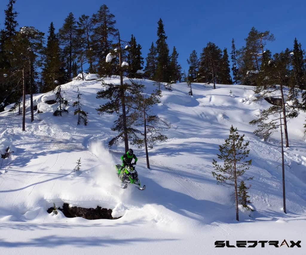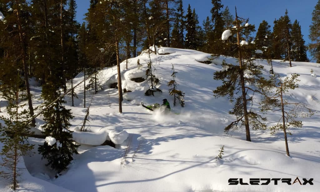 Fördelarna med nya Ascender plattformen är många. Maskinen upplevs betydligt lättare och smidigare att kasta omkring i skogen än föregående hardcore. De avsmalnande kåporna och fotstegen kommer verkligen till sin rätt vid skråkörning och där är vi på Sledtrax överens om att maskinen är en av de bästa på marknaden.