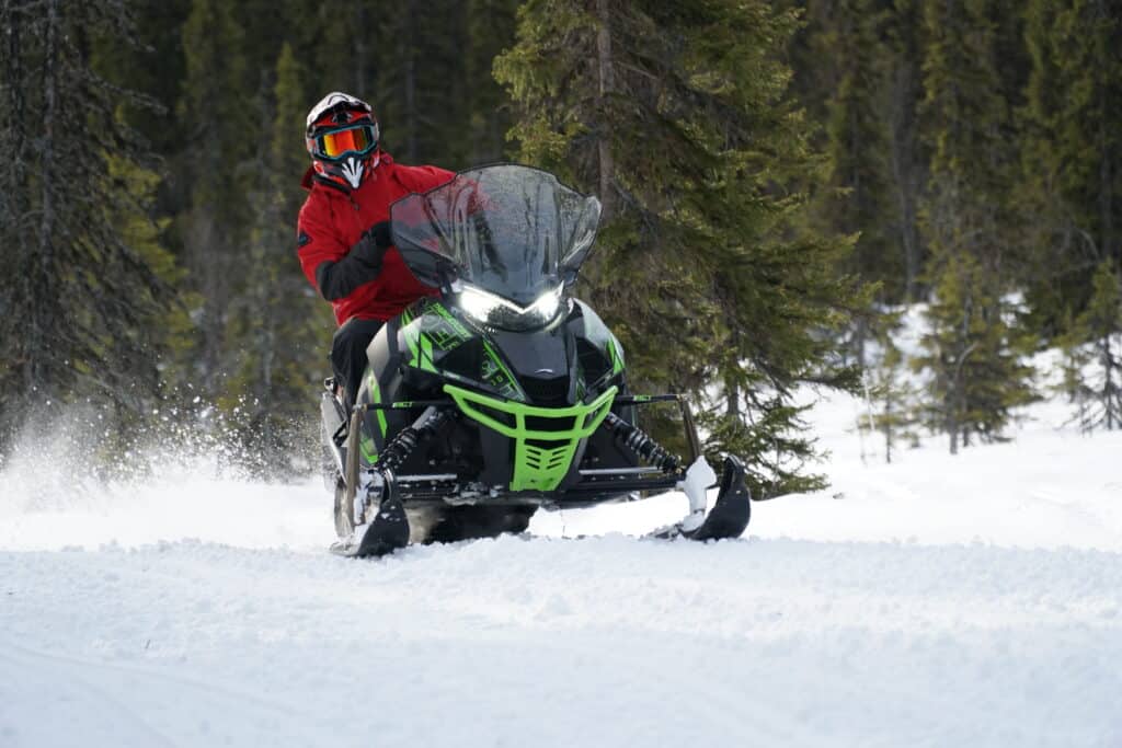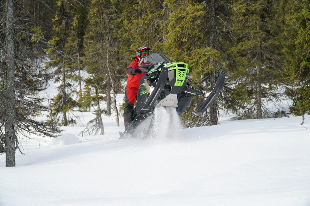 På parkeringen står Arctic Cats snabbaste och kraftfullaste ledskoter och väntar. Till synes en väl bekant maskin baserat på en beprövad plattform. Fronten på skotern är aningen lägre än vad man är van att se och mattan har tämligen låga kammar, detta skvallrar om hastighetsresurserna. I denna snöskoter hittar man dessutom en kraftigt effektfull motor på hela 200 hästkrafter och man möts direkt av ett härligt 4-takts mullret när man trycker igång maskineriet. Känslan är solid och mäktig. Nu är klockan slagen och vi beger oss ut på en riktig provkörning.