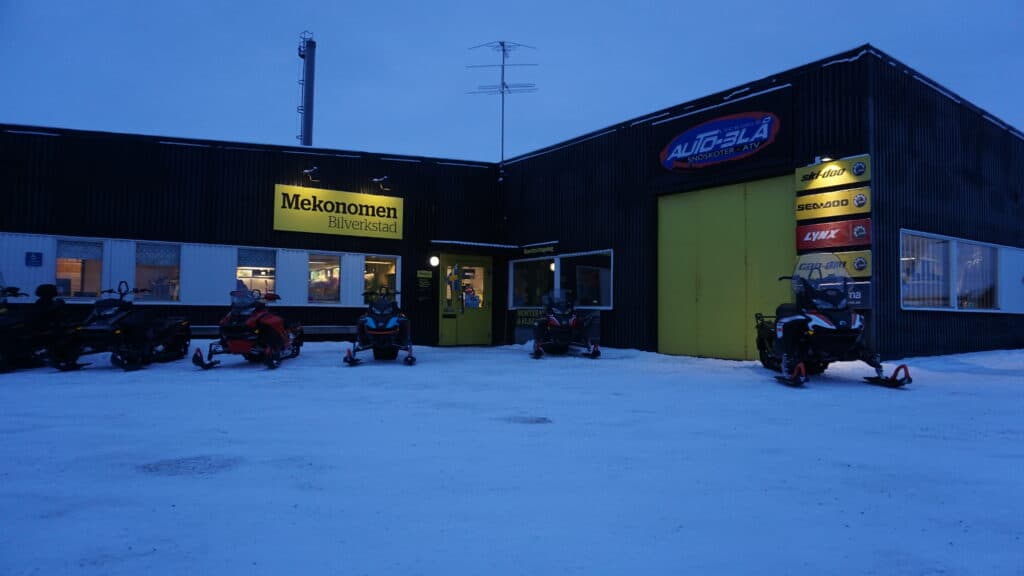 Autoblå är kanske mest känd som återförsäljare av BRP men det erbjuds ett brett sortiment utöver snöskotrar. Under rundvandringen i butiken hittar vi nämligen annat så som vattenskotrar, fyrhjulingar, snöslungor, gräsklippare, skoterkläder, ja listan kan göras lång och det märks tydligt att de gör sitt yttersta för att täcka upp kundernas behov.