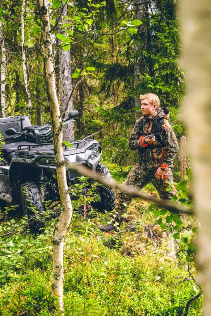 Markerna i Härjedalen kring nationalparken Sonfjället är rika på bär och således också Björn. Det är inte ovanligt att man på sensommaren och hösten får se Björn flertalet gånger. På marken vi under premiärdagen ska jaga har observationer gjorts på Björn flertalet gånger senast några dagar innan. Vi börjar dagen att reka längs skogsbilvägar med vår Polaris Sportsman 570. Efter någon timma hittar vi en första rusa, den är dock inte färsk och vi fortsätter spanandet.