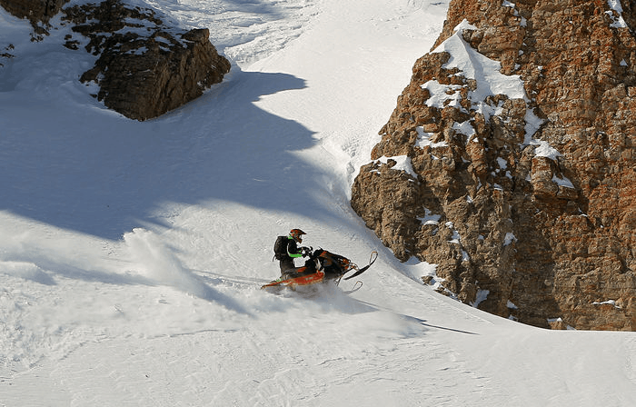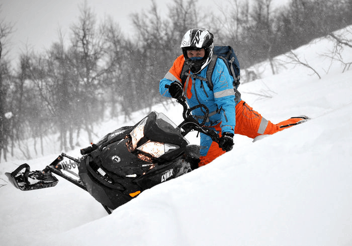 Den lutar mest mot sidan av leden av alla och är den som fixar lössnö bäst av dem alla. Med 64 mm matta så hittar den alltid grepp och är att skotta sig fram brutalt, om än skidorna vill peka mot trädtopparna lite titt som tätt. Fjädringen på Freeriden gör den till en fröjd att hopp och leka med, den tycks svälja det mesta den utsätts för. Freeridern är helt enkelt aningen brutalare än alla övriga trots att den har några år på nacken nu, det känns främst på motorkaraktären som är lite halvtråkig jämförelsevis.