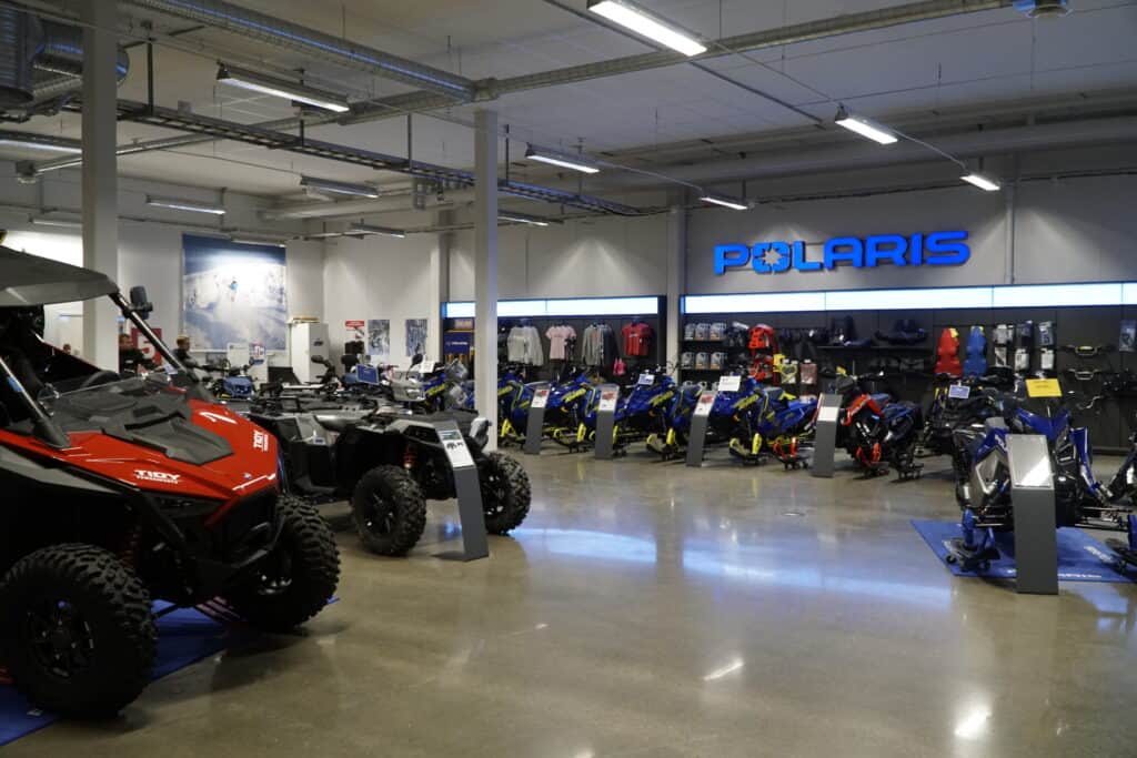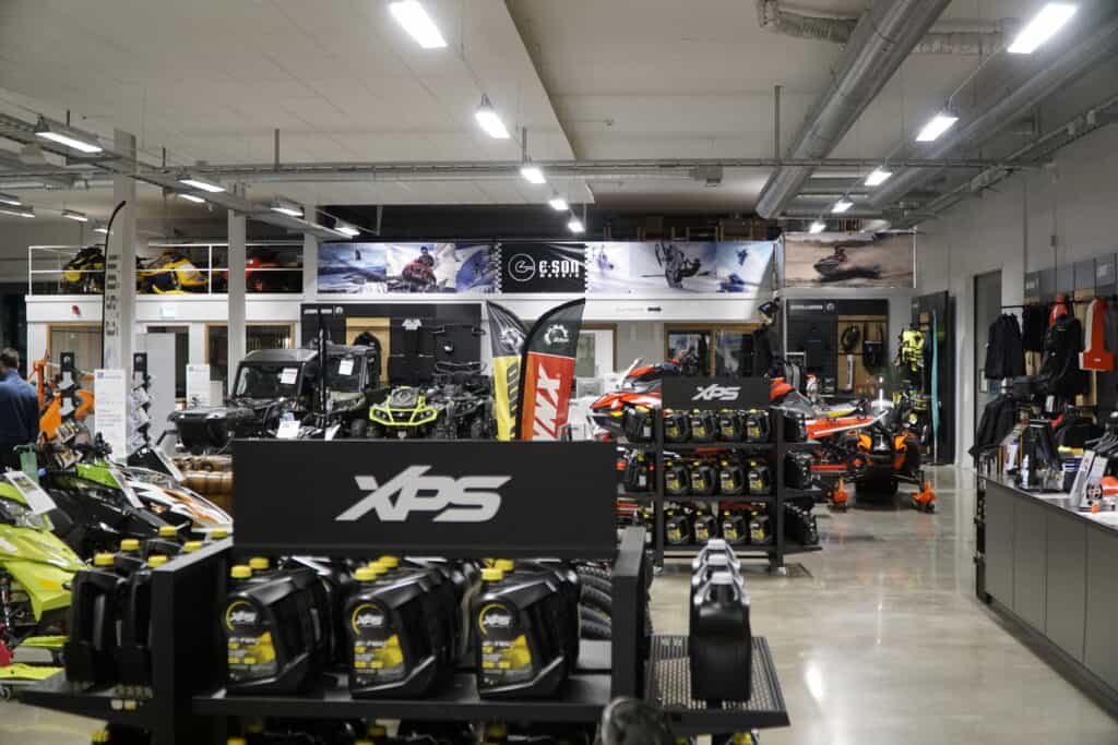 I ena delen av butiken har vi E-son Maskin med sitt kompletta utbud av BRP produkter, det vill säga Ski-Doo, Lynx, Sea-Doo samt Can-Am och i den andra delen av butiken är Tidy Powersports som erbjuder Polaris kompletta utbud med Snöskotrar, UTV samt fyrhjulingar. Utöver detta erbjuder även företagen cyklar från Scott och man ha även fått tillskott av Husqvarna E-bikes samt Husqvarna Motorcycle som kommer börja att rulla in lagom till våren. För att sedan ta vara på lokalens fulla potential har man inte bara ökat utbudet av produkter, man erbjuder även nya tjänster som förvaring av snöskotrar, vattenskotrar samt övriga maskiner. Detta är något som man med fördel kan kombinera med en service innan rätta årstiden är kommen för att vara helt säker på att maskinen är i skick inför första äventyren.