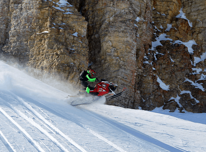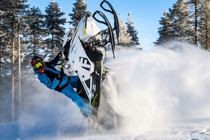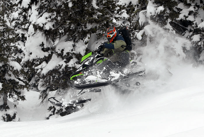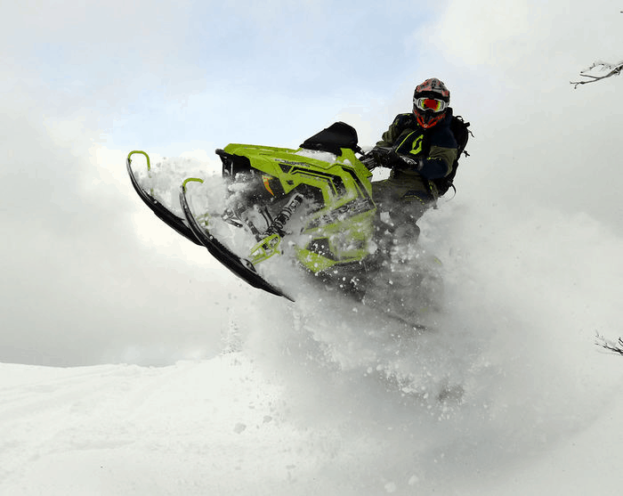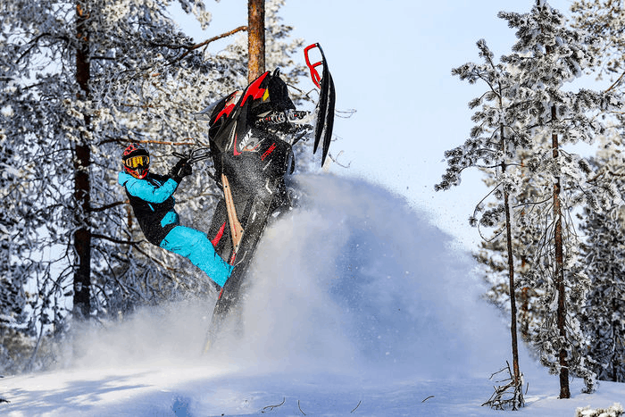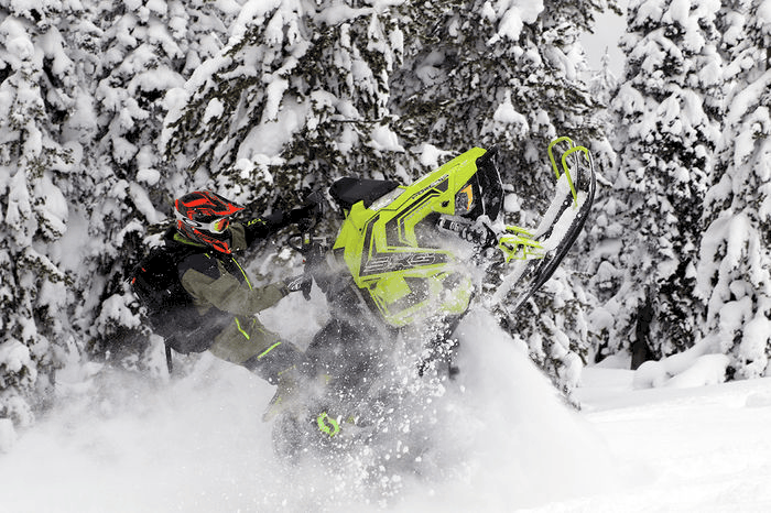 Ski-doo Freeride är minst lika rolig för lek och bus som Polarisen, men med lite mer pulver under huven. Bra fjädring och en grym balans gör flygturerna till ett sant nöje, och här hittar vi ännu mer förstärkningar än på tidigare nämnda maskiner.