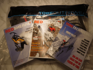 När vi sedan efter ett par år hade en kassa som gjorde det möjligt för oss så började vi annonsera i skotertidningar under ett par säsonger. Till sist insåg vi att det var ett bättre alternativ att starta ett eget skotermagasin där vi själva hade största delen av reklamen och på så sätt kunna få ut våra kläder i större skala. Med hjälp av Hans Wärdell skapades magasinet Red Sherpa som under tre års tid gav TOBE den skjuts de behövde. Mycket av innehållet i tidningen var relaterat till TOBE kläder och med reportage från friåkning runt om i världen gav magasinet en stor läsarskara.