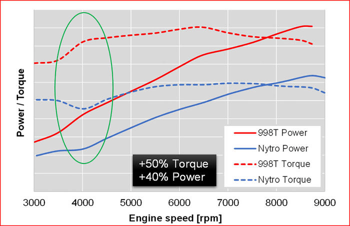 Tre separata insugningsrör matar motorn med luft och en uppsättning, speciellt för den nya motorn utvecklade högflödesinjektorer, förser spisen med bränsle. Injektorerna har 4 hål i munstyckena för att optimera tillförseln av bränsle under alla omständigheter och förutsättningar.