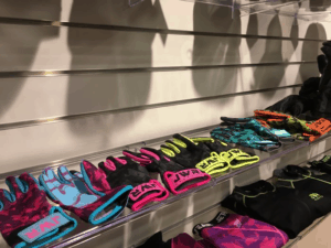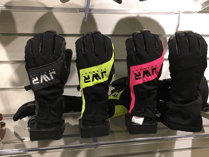”standard handsken” med lite grövre tyg. Kommer i tre olika färgkombinationer, svart/grå, svart/rosa och svart/gul.