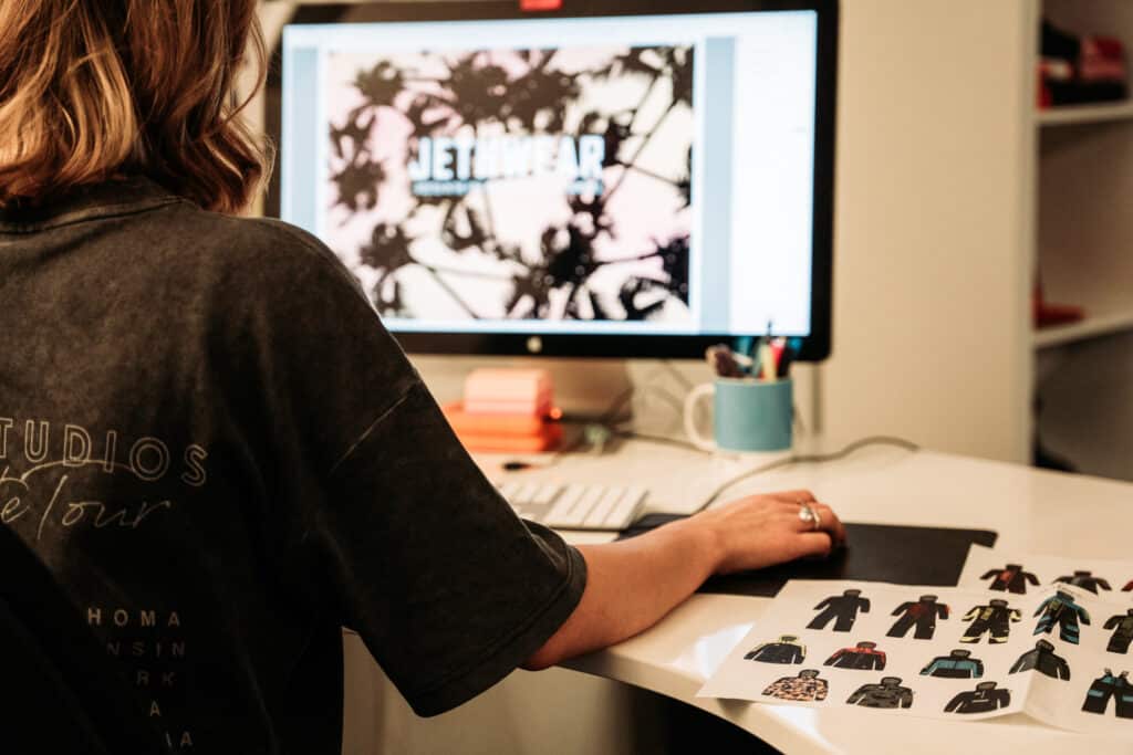 Jag insåg snabbt att det var just sport jag ville jobba med då det var lite mer avancerat och spännande, man fick möjligheten att göra outdoor grejer och kombinera det med mina intressen för sport och utomhusaktiviteter såsom snöskoter, downhillcykling och snowboard. Andra året på Nordisk Design skola flyttade jag till Åre för att avslutade min utbildning där. En plats jag fortfarande bor på än idag. Jag fick möjligheten att göra min praktik här på Jethwear i Östersund 2016 genom Märta som tidigare var designer och sedan dess har jag stormtrivts.