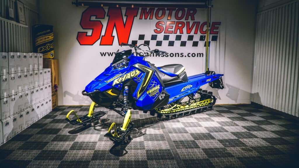 En solig onsdag förmiddag vibrerar det i fickan, tar upp luren och där står det SN Motorservice. Det var Kenneth som meddelar att man planerar leveranser av några nya Khaosar och att vi står på tur, vi kom överens om att hämtningen skulle ske på fredag. Likt en stövares fokus på mat var de närmaste dagarnas tankar bara på en sak, att få hämta vår nya partner från Polaris. På dagen D kunde undertecknad inte hålla tiden utan var på plats 30 min i förväg, väl inne i den välfyllda butiken fanns det mycket att titta på både i maskinväg och kläder. Allt detta är ju intressant en vanlig dag men likt stövaren jag nämnde tidigare var fokuset inställt på att hitta vår maskin. Vi hör en glad röst som frågar om vi är vilse, det är Angelica som förstår vad vi letar efter och visar oss rätt.