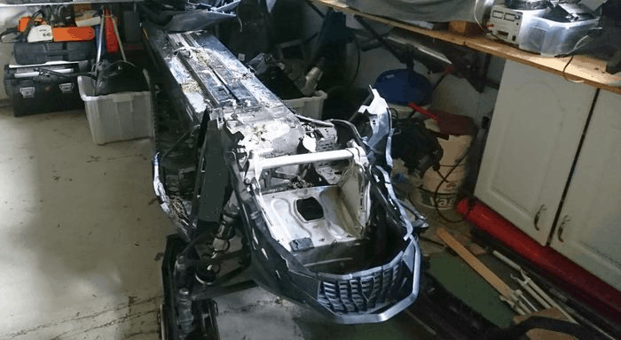 För att få tag i nästa ack så viktiga pusselbit i vårt projekt kontaktade vi åter Svedea som hjälpte oss med förra projektet, och även denna gång var de positivt inställda att vara med på våra galenskaper, vilket vi tackar för. Det här vore inte möjligt utan Svedeas hjälp! I början på september fick vi så det efterlängtade telefonsamtalet. En kvaddad Ski-Doo Summit 600 E-TEC hade precis blivit inlöst, och vi fick hämta den för att plocka de delar vi behövde för att ”E-TEC-konvertera” vår 600 RS. Ett projekt som verkligen ligger i tiden då BRP själva nyligen presenterade en 600 RS E-TEC inför 2018. Då det som kommer på tävlingsbanorna oftast letar sig ut till konsumentmaskiner på ett eller ett par år är det med stor sannolikhet nästa MXZ för ledbruk som vi får en förhandstitt på. Men redan i vinter kan ni läsa om detta här på Sledtrax. Kom ihåg var ni hörde det först!