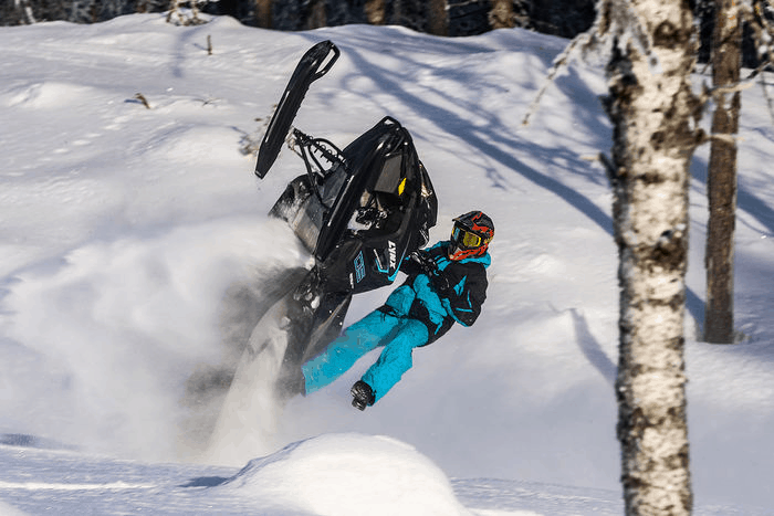 Motorn är inget mindre än den stekheta och efterlängtade 850-kubikaren från Rotax. Hästar flyger ur motorn och kraft verkar inte vara någon bristvara. Vid första anblick så är det något som inte stämmer? Tunneln täcker inte mattutsticket. Stänklappen som traditionellt hänger ner från tunneln finns inte där. Istället så har man fäst en flärp nere vid vändaxeln som ska kasta tillbaka snön in mot kylaren.