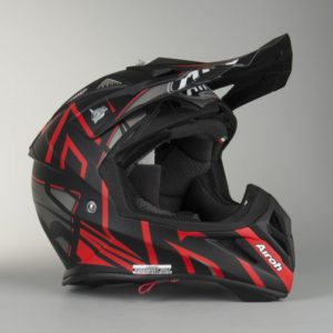 Airoh Aviator passar in på alla punkter på kravlistan. Den är lätt, har god ventilation och är i mina ögon även väldigt snygg. Materialet i hjälmen är en blandning mellan kolfiber och kevlar vilket gör att den väger in på endast 950 gram. Vanligtvis tillverkas hjälmar bara i en eller max två storlekar och sedan får fodret bestämma storleken. Airoh är olika stor beroende på vilken storlek man väljer. Här har man definitivt inte sparat på krutet. Säkerheten är som sagt viktig. Airoh har utrustat hjälmen med ett fast emergency remove system. Är olyckan framme ska man snabbt och enkelt kunna avlägsna störtkrukan. En olycka har vi dock inte planerat in i testet. Hjälmen går lös på mellan fyra till fem tusen beroende på grafik och färgval.