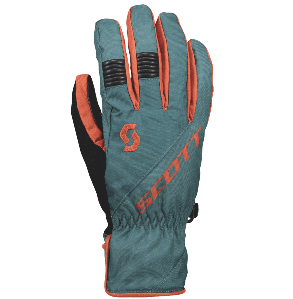 Här har vi en riktig värstinghandske från Scott med Gore-Tex membran, därmed ska handsken vara både vind och vattentät samtidigt som den transporterar ut fukt. Som de flesta vet är en torr hand en varm hand. Insidan av handsken är klädd med läder för maximal styrka och den är även lätt fodrad för att klara vinterklimatet.