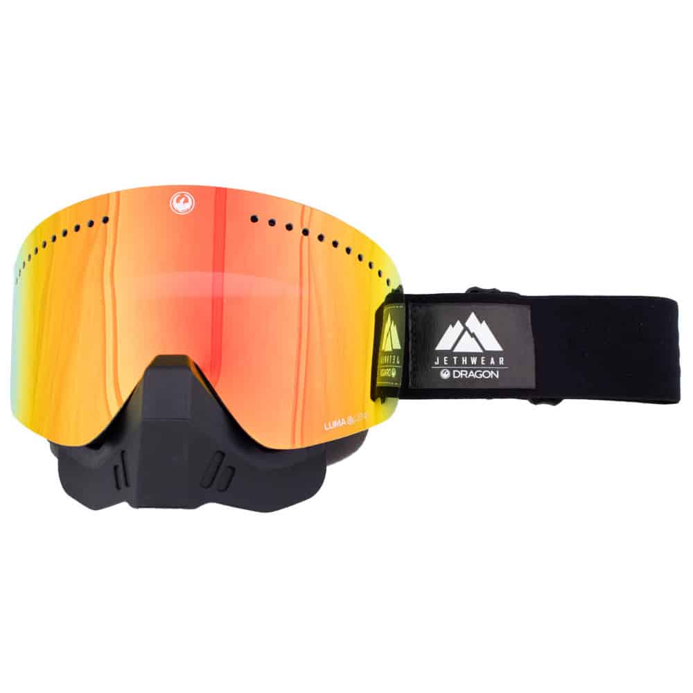 Samarbetet mellan Jethwear och Dragon var ett smart drag för att komma åt teknologin från en av världens främsta goggletillverkare. Jethwear NFX är en goggle där man tagit bort ramen, eller iallafall på utsidan. Den dubbla linsen med anti-fog behandling ligger utanpå själva ramen för att ge ett så stort synfält som möjligt. Brillorna har även ett snabbfäste för linsen där man snabbt kan byta till en ny om man vill byta färg beroende på väderlek eller en ljusare när det skymmer ute.