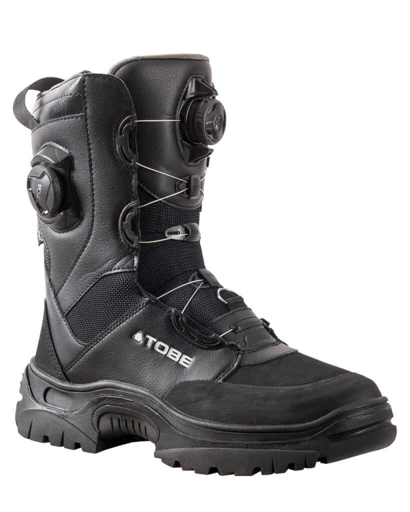 Rejäla kängor är ett måste för en inbiten skoteråkare och från Tobe kikar vi närmare på deras Cordus Boot som är en lite smidigare skoterkänga. Tunnare framdel tillåter att man kan använda dessa även när man kör snowbike och behöver växla. Det är även en fördel på skoter då det minskar risken för att fastna i en fotholk och vrida benet vid en olycka. Boas kraftigaste snörningssystem med vajrar är utformat för att passformen skall vara på topp. Slitstarka sulor, välisolerade och vattentäta ska dessa kängor vara