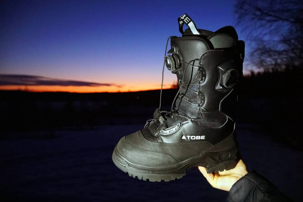 Dessa skor som Tobe själva utvecklat har en löstagbar innersko vilket brukar innebära att skorna kan bli stora och klumpiga. Men här måste vi säga att det lyckats väldigt bra med att göra skorna smidiga trots det. Som många andra skor har det krävts lite användning för att få dem lite mjukare men de sitter skönt med ett bra grepp runt hälen. Boa systemet med dubbla vred har gjort att man kan ”knyta” dom riktigt hårt om man vill för att få en lite styvare sko. Det som kanske imponerat mest under vintern är att vi aldrig har frusit i dessa dojjor då de har varit varma och torra. Och skulle man mot förmodan bli blöt så torkar dom snabbt när man tar ut innerskon.