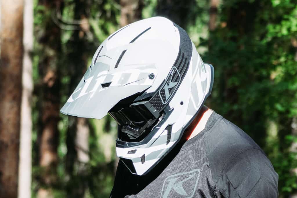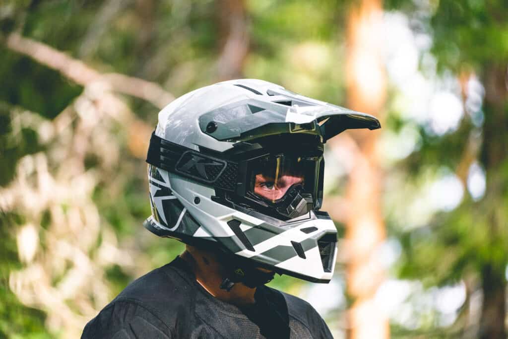 Något av det viktigaste skydd man har är definitivt hjälmen och Klim´s F5 hjälm med Koroyd teknik är även en av dom säkraste på marknaden. Det innebär att skyddet mellan det yttre skalet och huvudet är uppbyggt med ett slags plastnät som liknar ett gäng sugrör i plast som skulle vara ihoplimmade i varandra. Denna konstruktion absorberar upp till 48 % mer energi mot vanliga hjälmar vilket gör den betydligt säkrare vid en en olycka. Det följer även med en extra skärm, breathbox och ett vindtätt tyg som går att knäppa fast som stänger ventilationen vilket gör att denna hjälm även fungerar lika bra på vintern under dom kallaste dagarna.