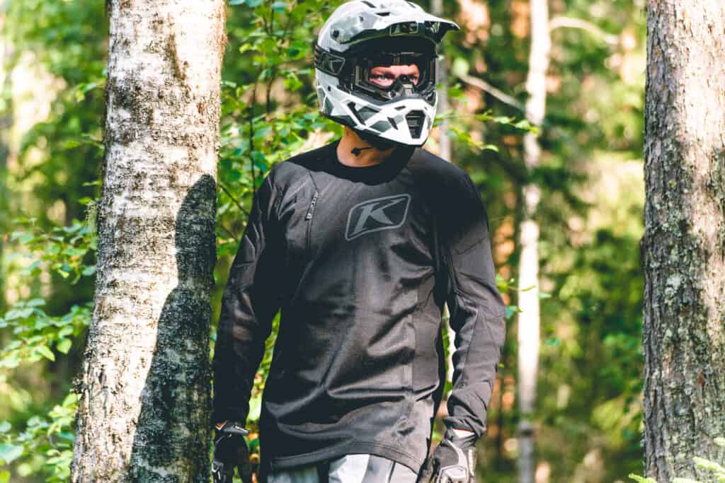 En jersey vet de flesta att det är en tunn tröja avsedd för enduro eller motorcross, denna tactical pro jersey från Klim skiljer sig dock en aning. Den är gjord av ett väldigt kraftigt och slitstarkt tyg där man valt att lägga in vaddering som ett inbyggt skydd för axlar och armbågar. Vi kan intyga att denna jersey tål betydligt mer stryk än en vanlig med det kraftigare materialet, men man har även lagt in meshtyg på de områden sär man vanligtvis svettas mycket. På bröstkorgen finns det även en ficka med dragkedja för kontokort eller mobiltelefon och i fickan har man även en trasa för att kunna torka av goggles med.