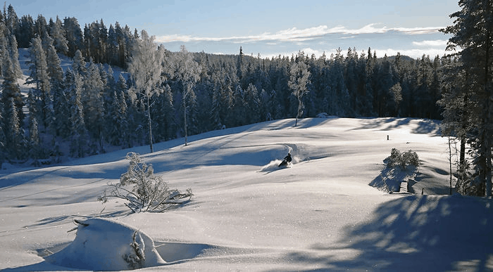 SKS:n får bekänna färg i meterdjup lössnö. Inkörd och klar enligt konstens alla regler blev det äntligen dags att pumpa puder, och puder fanns det, i massor! Kan inte påminna mig om bättre och roligare före här hemma. Inte ens USA tror jag kan matcha föret, förutom den där gången när det kom 70 centimeter över en natt och det ovanpå redan meterdjup snö. Det är en svårslagen upplevelse. Men föret här hemma går inte av för hackor heller. Ordet magiskt räcker knappt till.
