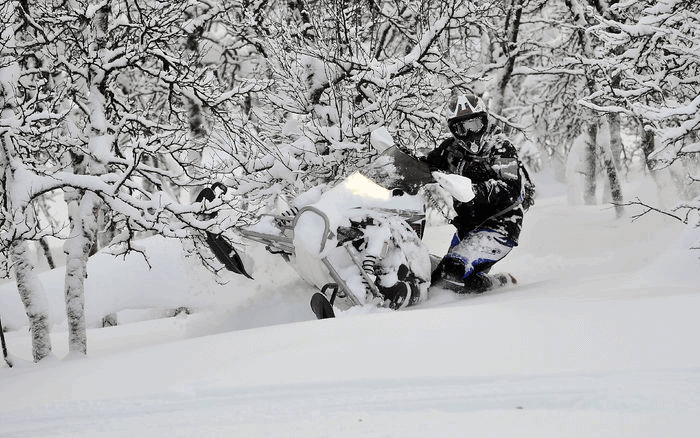 Men det som är så fascinerande med vintern och skoteråkning är att beroende på vilket väder som har varit eller snömängd ser det alltid annorlunda ut i skogen år efter år trots att man tror att man har hittat all bra åkning redan. Som ett exempel, senast förra vintern hittades en fantastisk serie myrar alldeles i närheten av stugan. Föret var väldigt olika på olika områden och hittade du platsen där all snö hade landat efter blåsten så var det riktigt bra puderåkning. Började med att ta mig igenom en liten dunge med nöd och näppe, fick ligga på skotern för att inte fastna i trädet. Vänder sedan upp blicken och ser en orörd myr. Ger järnet och lägger omkull skotern, hela huven försvinner ner i snön och den bara väller över skotern. Äntligen tänker jag och surfar vidare, när nästan hela myren är uppkörd ser jag en öppning som ser ut att leda till nästa myr. Allt detta sker i lätt motlut så skotern får jobba lagom hårt i den djupa snön.
