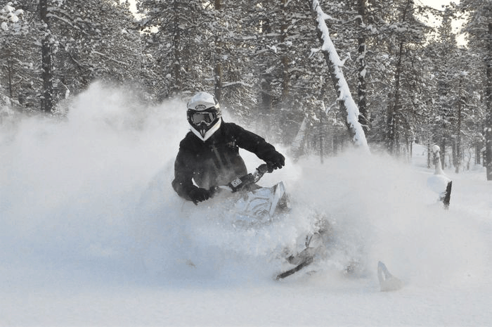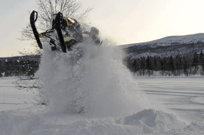 Denna morgon visar termometern -13 grader och när vi kikar genom fönstret ser vi några glesa moln, men klar himmel mot horisonten. Det är med andra ord helt perfekt väder för en dag med massor av lössnökörning. Efter ett kraftigt ryck i snöret mullrar Rotax 850 E-TEC motorn igång direkt, trots att den är iskall. Vi låter den stå på tomgång för att bli riktigt varm innan vi ger oss iväg.