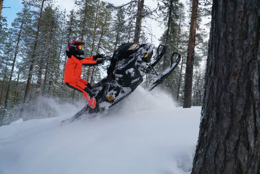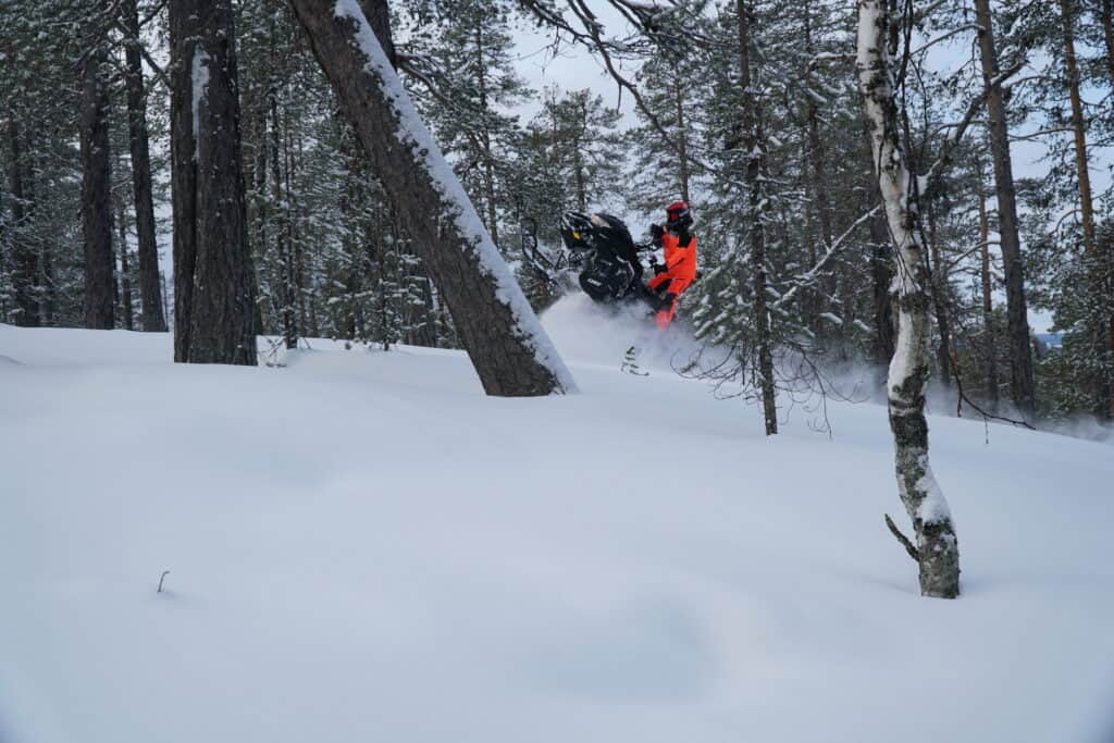 Hur känns då maskinen vid en första provtur? Jaa… tanken slår nog många om en 600 har det som krävs för att få nog mycket snurr i maskineriet, blir det nog roligt och tar den sig fram i brantare terräng? Det första som slår oss är hur lättkörd den är. Skotern känns smidig och följsam och 36” framvagnen gör inte saken sämre. För den som gillar att köra med skidorna rakt upp i vädret kan vi meddela att det inte är några problem med den nya 600 motorn som har en otroligt bra gasrespons och busfaktorn är förvånansvärt hög.