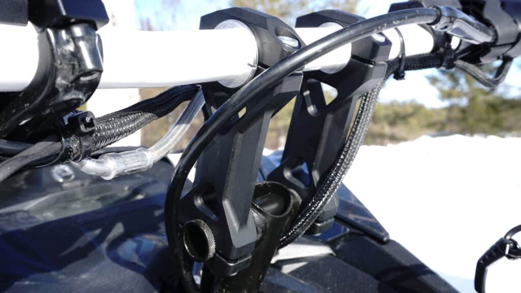 Personligen upplevs originalstyret samt höjare alldeles för högt. Jag trivs väldigt bra med ett lägre styre då jag upplever en ökad kontroll och ger mig bättre styrka när jag ska hantera maskinen. Vi bytte därför ut originalhöjaren till en 4” höjare från skinz för en bättre och personligt anpassad körställning.