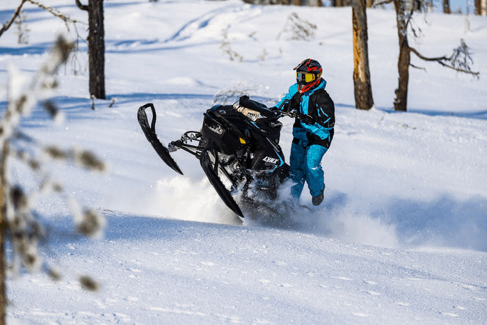 Inte riktigt lika indragen som på Summiten, däremot har man gjort kåporna betydligt smalare nertill (där det är viktigt). Det gör att det är mindre som drar i snön vid djupa nerlägg och mindre yta som skotern kan hänga upp sig på.