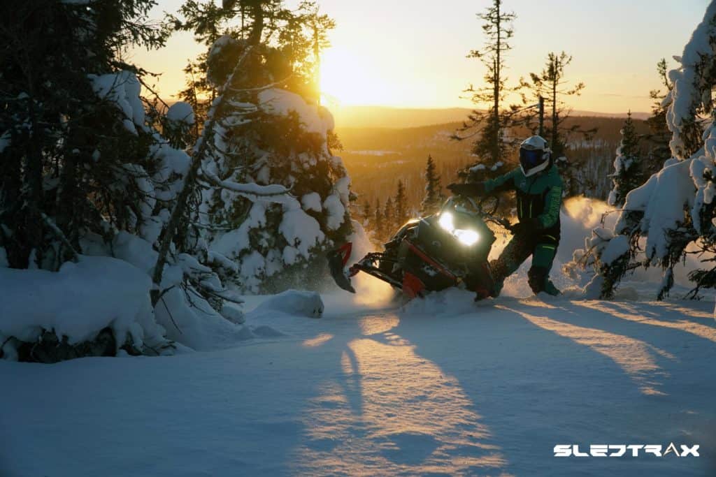 Solen skiner och mer minusgrader än en handfull är det inte. Solen följer bergsryggen på andra sidan sjön, knappt så den orkar upp. För att hitta lite sol kommer vi få söka oss mot lite höjder på södersidan. André och Henke från Sledtrax och ett gäng polare ansluter för att även de bomba i snön som finns. Vi kör bil ett par mil från tätorten för att söka det vita guldet i sin ädlaste form.