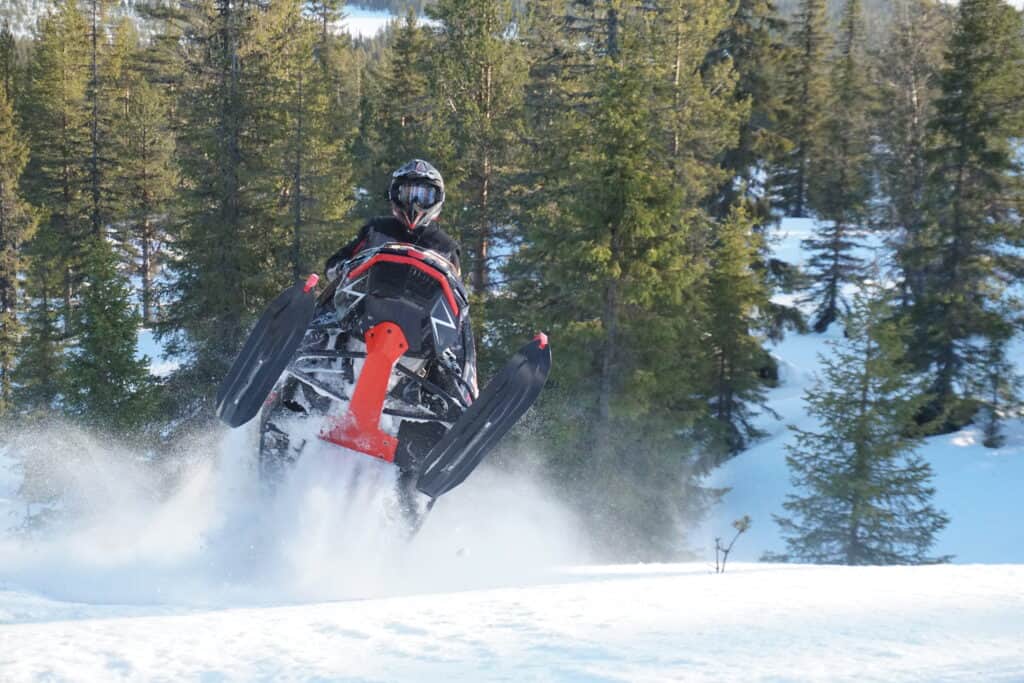 Mellan all lössnökörnig har det hunnits med att testa hur den beter sig på led. Svaret på den frågan är, här har vi en skoter med sann Double Nature. För när guppen tätnar och ryggarna blir höga trivs Lynx RE3900 som fisken i vattnet. Kommer man till ett parti på leden där ena sidan är slät och den andra ser ut som en puckelpist håller man gärna mot den knöliga sidan.