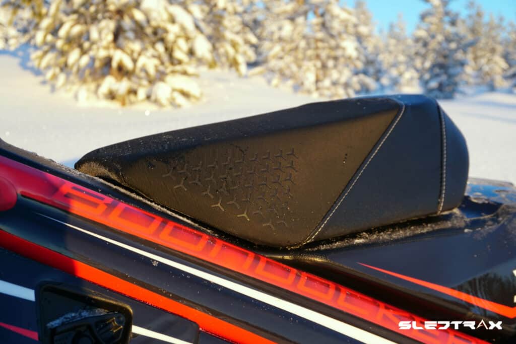 Dynan är både lägre, betydligt kortare och lite lättare än original. Det känns kanske onödigt, men bara efter att ha provat dynan en kort sväng på maskinen känns förändringen väldigt välkommen. Tål att påpeka att jag endast sträcker mig 174 centimeter över havet. Så alla medel för att hjälpa benen att komma över maskinen från sida till sida underlättar enormt. Ett rött Extrem-bukskydd har även monterats för att skydda just buken på maskinen.