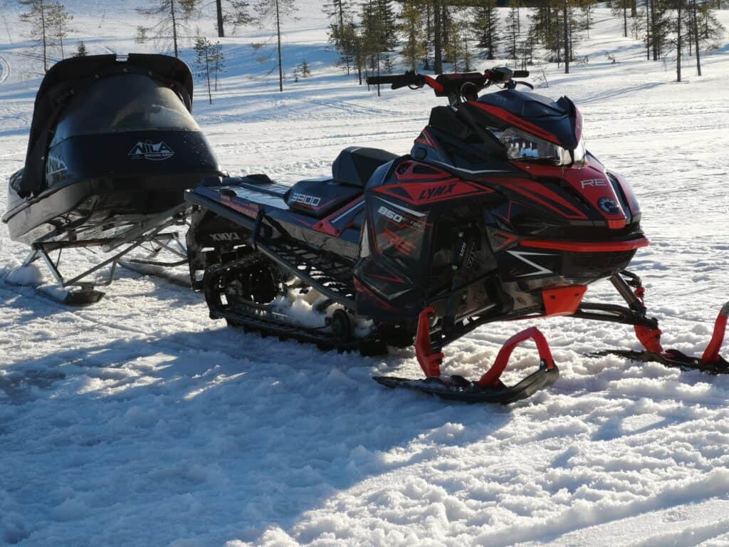 När vintern kommit så långt att våren börjat ta över fick vår eminenta allroundmaskin axla en ny uppgift, nämligen som pulkdragare. En förstärkt dragbåge monterades och ett drag. Även Isrivare monterades, något som inte sitter standard på Lynx Boondocker RE3900. Ett litet minus i kanten, det bör sitta standard på alla längre maskiner av denna karaktär.