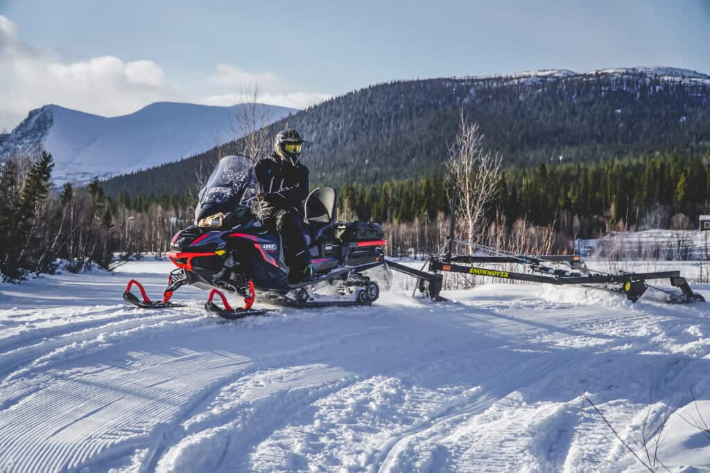 Med veden på plats där hemma ger vi oss i väg på nya äventyr och åker till fjälls. Planen är att komma ut på fisketurer men även passa på att sladda lite led. Det senare visar sig fungera precis lika bra som veddragningen, sladden är stundvis tung då den samlar stora mängder snö framför sig men det är inget problem för vår Lynx Commander 900 Ace Turbo.