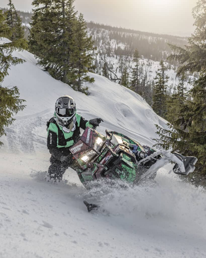 Jag har samarbetat med KLIM sedan säsongen 17/18 och har sedan dess kört i deras kläder och utrustning från topp till tå. Jag representerar deras produkter dels på sociala medier men framförallt ute i verkligheten och på evenemang. Jag har också ett samarbete med den lokala Polarisbutiken i Sundsvall, Powersport Center, som hjälper mig med maskin och service. Butiken är relativt nystartad men jag ser stor potential och drivkraft i verksamheten så därför känns det kul att vara med på deras utvecklingsresa.