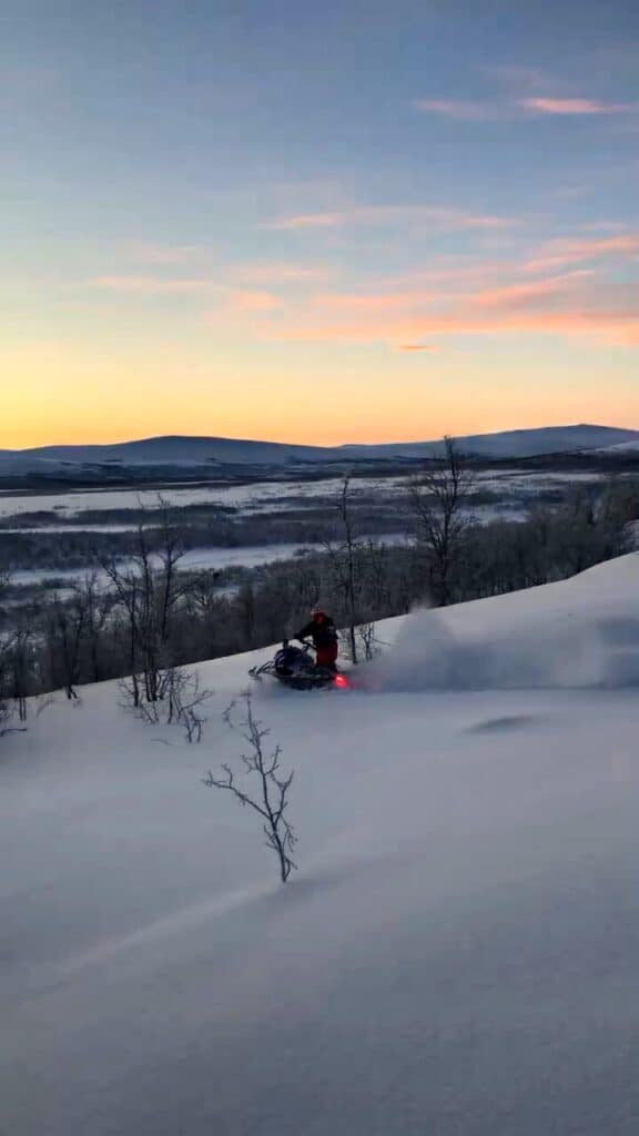 -Det vill jag inte säga, jag hade en period runt 2010 då det blev mest långkörning. Vi kunde åka ner till Vuollerim tur och retur, jag hade en crossfire 800 som packades lätt och sen bar det av. Det var efter min första resa över till Chris Burandt 2012 som jag blev helt såld på friåkning och klättring. Till vintern 2013 köpte jag mig en pro rmk och körde sedan polaris fram till 2018.