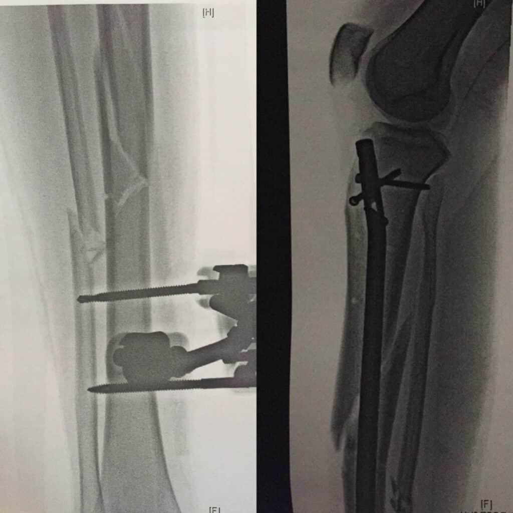 Där låg jag fyra timmar med ett komplicerat benbrott med öppen fraktur innan helikoptern anlände klockan två på natten. Nu har jag en inopererad märgspik i titan på 50 centimeter i benet som gör sig påmind ibland om olyckan.