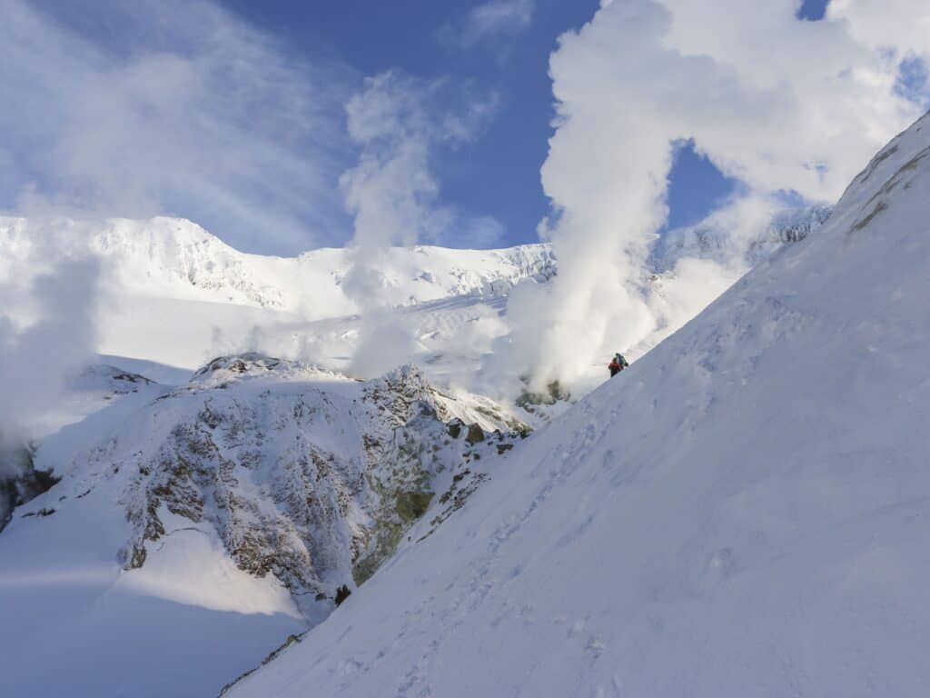 Det är resan Kamchatka, köra i miljön som finns där med bl.a. vulkaner. Vi stannade vi en av vulkanerna där man kunde gå in, där pyrde det och den spotta fortfarande ut aska. Det känns faktiskt helt overkligt att ha varit med om den resan, göra första skoterspåren där. Som tur är finns det på film, annars hade det varit svårt att ta in. Ett annat väldigt starkt minne är Wyoming, vi körde på 3400m i storslagen miljö och bergen där gör att Svenska fjällen känns väldigt små.