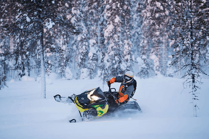 Som ni kanske märker har vi två ”kortbandare” med i gänget, båda har en mattlängd som mäter cirka 146 tum eller 370cm. Det är dessutom koncernsyskon där den ena kommer från jultomtens och bastuns hemland Finland. Den har fått namnet Lynx Boondocker 3700 600 E-TEC och är trots något kortare matta i klassen, ändå är en maskin byggd för lössnö.