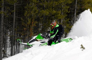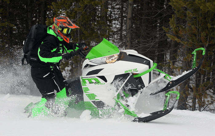 På en andra plats hittar vi ett grönt lyckopiller som dock är lite för bred över buken för att nå upp till övrigas skrå egenskaper. Istället finns här otroligt bra fjädring och en motor som verkligen går som kulor och krut, det är också det som gör att Arctic caten tar sig förbi Lynxen och Ski-doon.