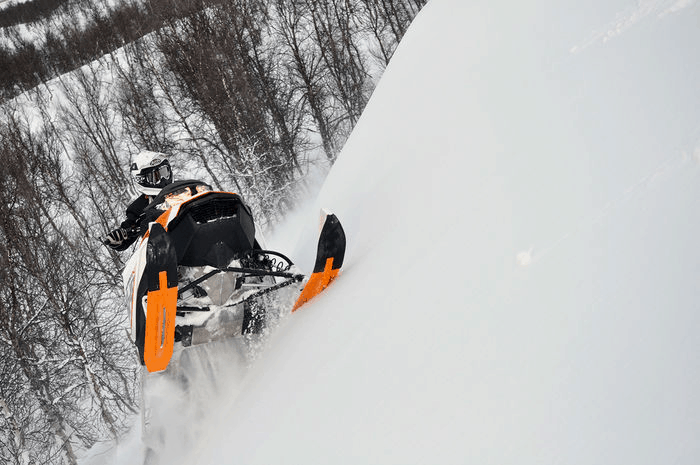Vid ”för” brant körning brukar annars vissa skotrar ha en tendens att vilja sträva upp mot toppen istället för att hålla linjen. Det här är verkligen Pro RMK 800:ans paradgren.