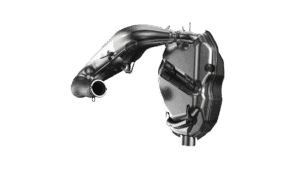 Om vi kikar på avgassidan ser vi även här stora nyheter, här har helt nya trestegs avgasportar utvecklats. Nu är det bättre tätning mot kolvarna för större kontroll över avgasflödet och ökad prestanda i motorn. Det förbättrade kylsystemet kyler även avgasportarna som är formgjutna i Magnesium.