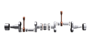 Det är inte bara kolvarna som fått sig en översyn, man har även gjort en helt ny vevaxel med en rad förbättringar. Den är byggd för att vara stark och styv för att minimera påfrestningar som kan bli om det är för stora rörelser i axeln. Även här har man jobbat med trögheten i motorn och för att minska den har man byggt en vevaxel med låg vikt. Allt för att få en rapp karaktär på motorn.