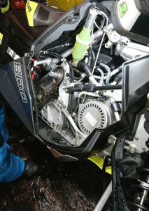 Oavsett får man nog säga att Polaris gjort en tankevurpa här. Markus skickade på mig 19/44, vilket ger en teoretisk topphastighet på ca 124 km/h. Alltså fullt tillräckligt och lite till för min körning. Observera att drevningen 19/44 gör att originalkedjan blir perfekt att använda. 19/43 går också men då blir kedjan slakare, det är sämre av flera orsaker.