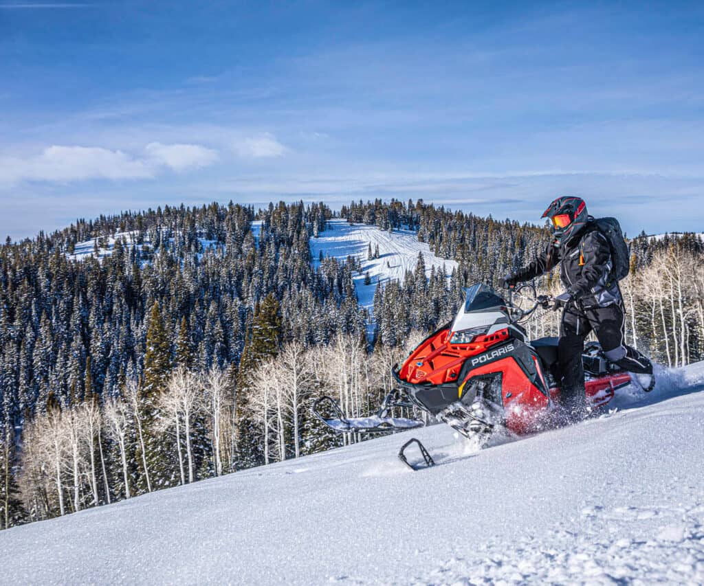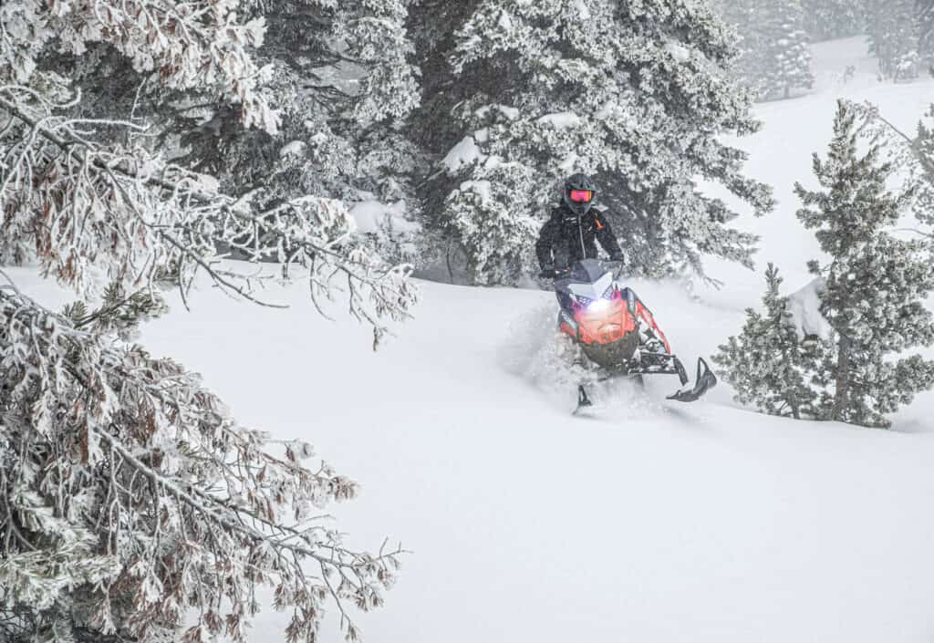 För att få en helhetsbild om vad detta är för en maskin vill vi först titta in lite på detaljerna. Under huven sitter den välrenommerade Patriot 850 motorn som slutligen driver runt en series 6 eller series 8 matta. Detta är nämligen ett av valen som man får göra på denna modell. Där series 6 mattan med sina 2.6” kammar och 2.86 delning är ett beprövat alternativ. Den nyare serie 8 mattan har istället 2,75” kammar och en 3,5” delning vilket skall ge ännu bättre lyft i snön. Tunneln har fått en ny design med en avsmalnad bakdel för att minimera motståndet som uppstår när bakbågen skär i snön under körning. Sedan har man även bestyckat modellen med Walker Evans Monotube stötdämpare som är den lättaste modellen som erbjuds och mätaren är den mer traditionella Message Center Gauge, med andra ord är detta en renodlad klättermaskin.