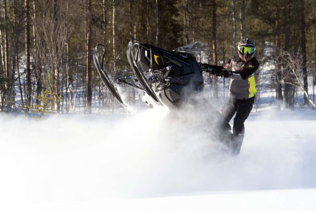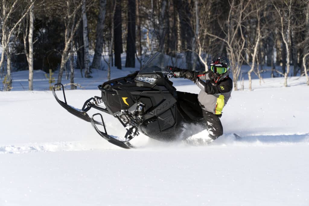 Nästa grej väl värd att uppmärksamma är den acceleration och stabilitet som erbjuds. Camso Storm 150 mattan med 38mm kammar gör verkligen sitt när det är dags att testa accelerationen. Den har ett oerhört fint grepp och kraften från 850 patriotmotorn förs verkligen över till backen när det är dags att ge sig iväg längs leden, full gas och du drar iväg likt en skott. Närmar du dig tvära kurvor? Bromsa in, luta dig i kurvans riktning och ge gasen en ordentlig touch, skidorna lättar lite lätt och du möts verkligen av en grym respons från hela maskinens egenskaper. Allt från grepp, till acceleration till stabilitet. Denna maskin är minst sagt underhållande och framkallar definitivt ett leende under hjälmen!