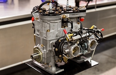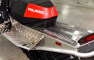 I boggien hittar vi också Walker Evans stötdämpare som förutom att klara stora hopp ska hjälpa den 136” långa racemattan att hitta det bästa greppet. För drygt tjugo år sedan var det förmodligen otänkbart hur en skotercrossmaskin skulle kunna bli så lång. År 2000 var året då Polaris släppte sin första tvåcylindriga 800 motor i en RMK som var häpnadsväckande 136” lång.
